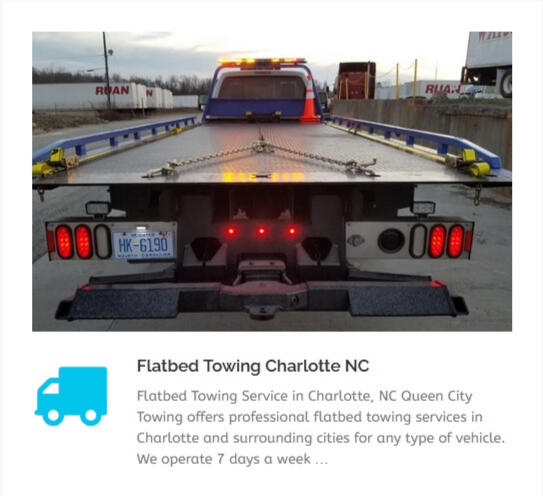 Need fast and affordable towing in Charlotte, NC, and surrounding areas? Call us at (704) 773-9165 for the best towing company you can rely on! We offer short and long distance towing and roadside assistance, dead battery jump start service, flat tire change, vehicle lockout.